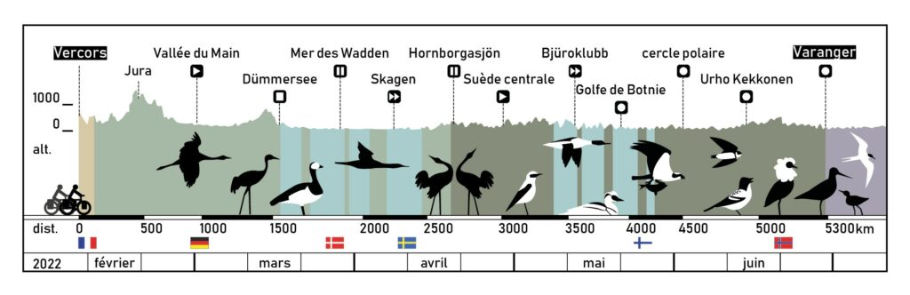 Un aller-retour des alpes à la toundra arctique, sur la route des oies sauvages, des grues et autres migrateurs africains.